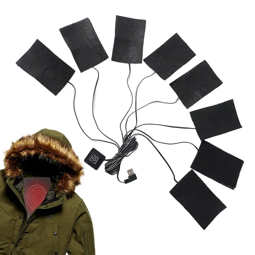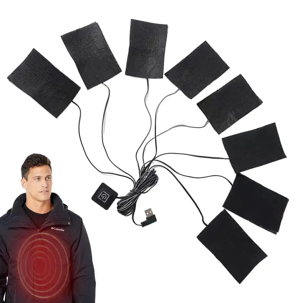 USB Electric Heating Pad for Clothes 8 in 1 Jackets Warming Heating Pad Winter Sport Vest Heated Mat Carbon Fiber Heating Cloth